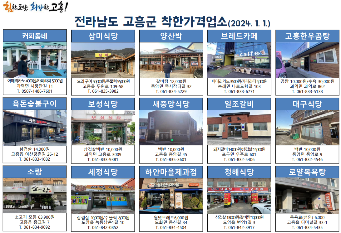 4. 고흥 착한 가격 업소추천