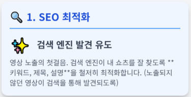 영상을 올리기만 해서는 노출되지 않습니다. 검색 엔진이 내 쇼츠를 잘 찾도록 **SEO 최적화**를 완료하고, 만들어 둔 **쿠팡 링크를 가장 효과적인 위치**에 심어야 합니다. 마지막으로, 수익을 분석하고 개선하는 방법을 안내합니다.
