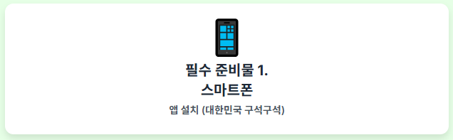 - ✅ **스마트폰:** '대한민국 구석구석' 앱 설치를 위해 필요합니다.