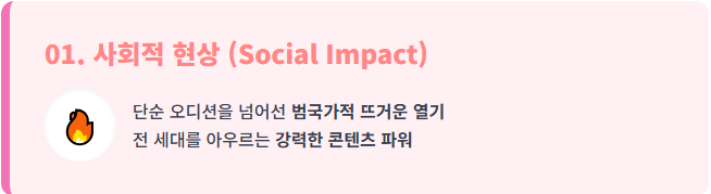 - 문화적 자부심: 해외에서도 주목하는 'K-트로트'의 위상 강화.