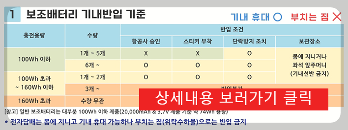 보조배터리의 기내 반입 규정