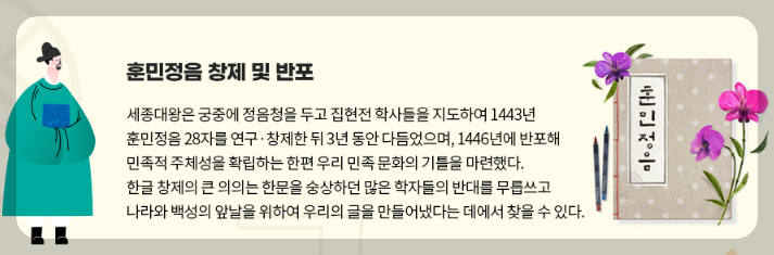 세종대왕의 가장 유명한 업적은 바로 한글 창제입니다. 훈민정음으로 알려진 한글은 모든 백성이 쉽게 읽고 쓸 수 있도록 고안된 문자로, 세종대왕은 이를 통해 민중의 교육과 문화 발전에 크게 기여했습니다.