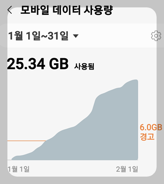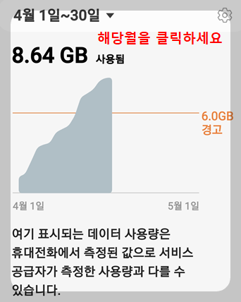 데이터 사용량을 클릭하면, 현재 사용 중인 데이터 양과 남은 데이터 양을 확인할 수 있어요.