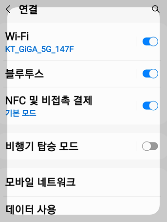 네트워크 및 인터넷 또는 연결 메뉴를 선택해요.