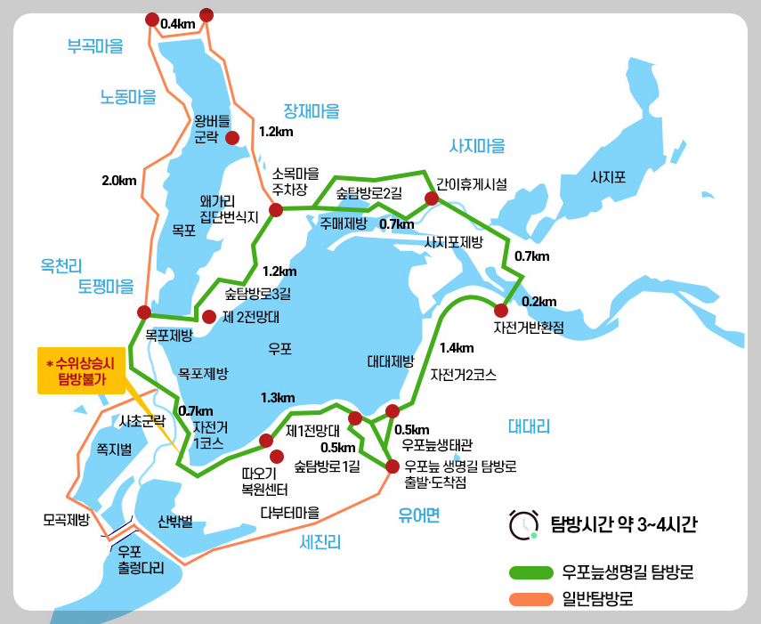 안전 수칙: 방문 시에는 일몰 전에 탐방을 마치고, 안전을 위해 혼자 다니지 않도록 유의해야 합니다. 우천 시에는 탐방로의 수위가 상승할 수 있으니 피하세요. 작은 비 내리는 날은 운치를 더하지만^^