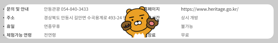 안동 용계리 은행나무는 연중무휴로 운영되며, 입장료는 무료입니다. 이로 인해 누구나 쉽게 방문할 수 있으며, 가족, 친구와 함께 가을의 정취를 즐기기에 안성맞춤입니다.