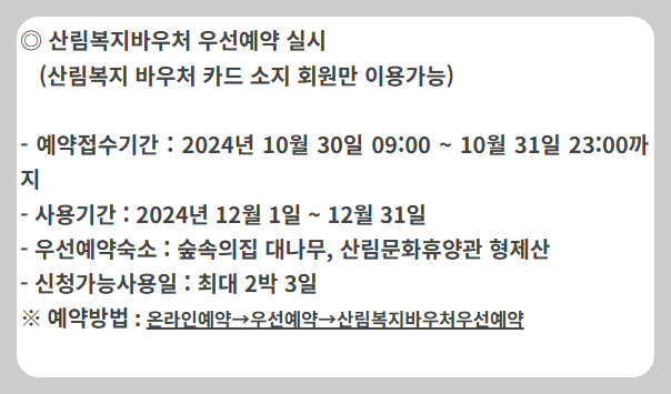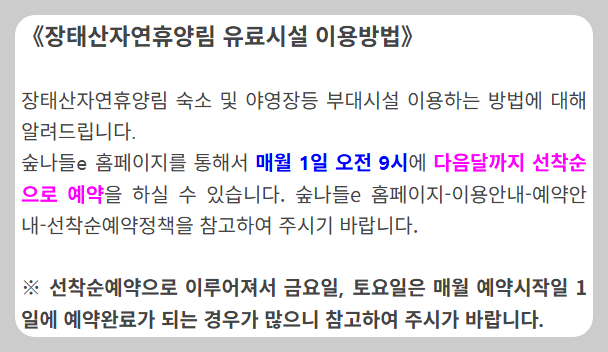 편의시설: 휴양림 내에 카페와 매점이 있어 간단한 식사 및 음료를 구매할 수 있습니다.