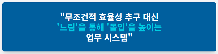 번아웃과 낮은 생산성이라는 문제를 해결하기 위해, 기업들은 **'느림의 가치'**를 역설하기 시작했습니다.