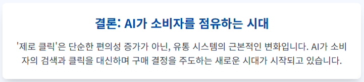 제로 클릭 시대의 경쟁은 **'검색 결과 상위 노출'**이 아니라, **'AI 추천 알고리즘의 기본 선택지'**가 되는 것입니다. 일단 AI가 선택한 제품은 재구매 가능성이 매우 높기 때문입니다.
