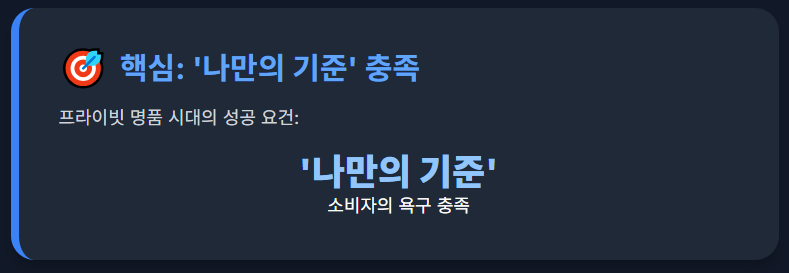 👉 프라이빗 명품 시대의 성공은 **'나만의 기준'**을 제시하는 소비자의 욕구를 충족시키는 데 달려 있습니다.