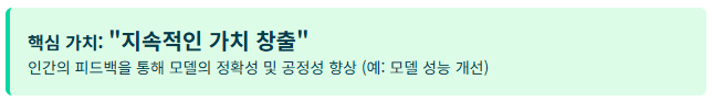 AI 모델의 성능을 향상시키기 위해서는 인간의 피드백이 필수적입니다. 인간은 AI가 내린 초기 판단의 정확성을 확인하고 오류를 수정하여, AI가 더 정확하고 편향 없는 결과를 도출하도록 **지속적인 가치 창출**을 담당합니다.