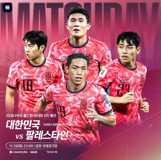 대표팀은 19일 오후 11시(이하 한국시간) 요르단 암만의 암만 국제 경기장에서 팔레스타인전을 갖습니다. 2026 북중미 월드컵 아시아 지역 3차 예선 B조 6차전 원정 경기로 이번 경기는 축구 팬들에게 매우 중요한 경기로, 월드컵 본선 진출을 위한 중요한 발판이 될 것입니다.