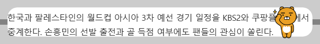 한국은 현재 좋은 흐름을 타고 있으며, 팔레스타인과의 경기는 승리할 가능성이 높습니다. 그러나 축구는 예측할 수 없는 스포츠이므로, 최선을 다해야 합니다.