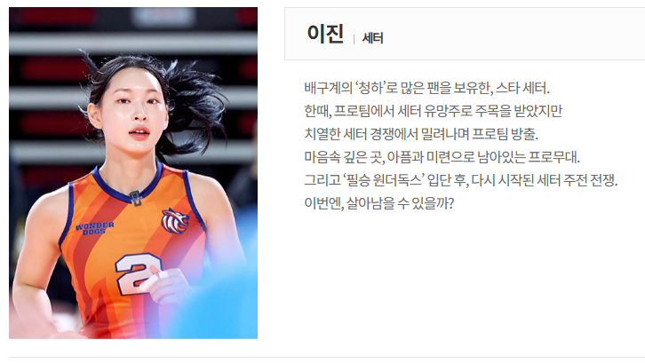 이진 선수가 필승 원더독스에서 보여줄 성장과 활약은 '신인감독 김연경' 프로그램의 가장 감동적인 드라마 중 하나가 될 것입니다. 김연경 감독이 '숨겨진 보석'으로 선택한 이진 선수가 코트 위에서 과연 어떤 놀라운 플레이로 팬들을 매료시킬지, 그 빛나는 미래에 모든 관심과 응원이 집중됩니다.