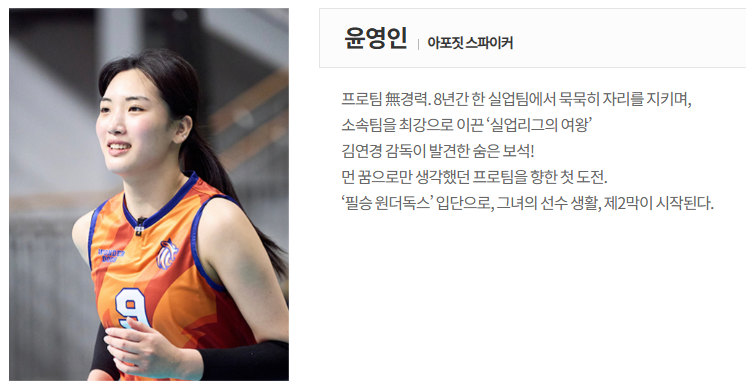 ※ 본 포스팅의 내용은 언론 보도 및 공개된 프로그램 정보를 기반으로 작성되었습니다. 윤영인 선수의 정보가 제한적인 관계로, 일부 내용은 프로그램의 연출 및 스토리텔링에 대한 추정 또는 해석을 포함하고 있습니다. 내용상 시점의 차이나 정보의 부족으로 인해 미세한 오류나 개인적인 해석이 포함될 수 있음을 알려드립니다.