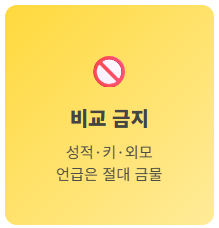 • 금기 사항: 성적, 키, 외모 비교는 절대 금물입니다.