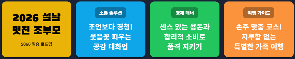 이번 2026년 설날 가이드는 단순한 정보 전달을 넘어, 우리 가족의 화목과 손주의 미래 자산을 설계하는 마스터 플랜입니다. 조부모님의 작은 변화와 실천이 우리 가족의 역사를 바꿀 수 있습니다.