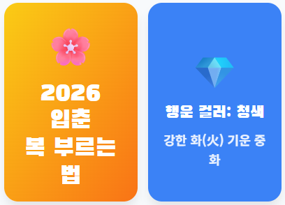 - 행운의 색상: 2026년은 화(火)의 기운이 강하므로, 이를 중화할 수 있는 **청색이나 흰색 계열**의 아이템이 좋습니다.