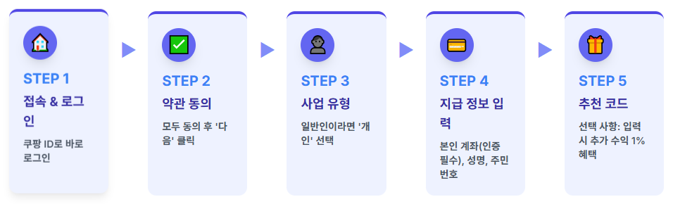 쇼핑 쇼츠 부업을 위한 **가장 첫 단계**입니다. 쿠팡 파트너스는 영상으로 판매한 수익을 지급받기 위한 필수 통로입니다.
