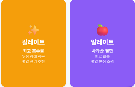 - 킬레이트 마그네슘: 아미노산과 결합하여 흡수율을 극대화한 형태로, 위장 장애가 적어 혈압 관리용으로 선호됩니다.