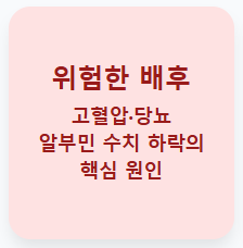 고혈압과 당뇨는 알부민 수치 하락의 '가장 흔하면서도 위험한' 배후 세력입니다.