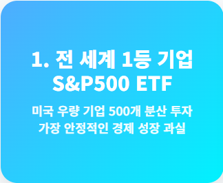 1. 전 세계 1등 기업에 투자하라: S&P500 ETF미국의 우량 기업 500개에 분산 투자하는 방식입니다. 개별 종목을 고르는 안목이 없더라도 전 세계 경제 성장의 과실을 손쉽게 누릴 수 있습니다. 가장 안정적이고 검증된 방법입니다.