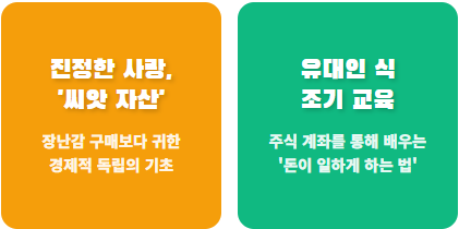 "유대인들은 아이가 태어날 때부터 주식 계좌를 만들어 경제 관념을 심어줍니다. 우리 손주에게도 일찍부터 '돈이 일하게 하는 법'을 가르친다면, 성인이 되었을 때 남들보다 수십 발자국 앞서 나갈 수 있습니다."