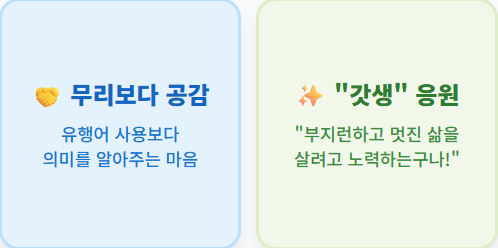 손주가 쓰는 단어 한마디를 이해하는 것은 그들의 세계로 들어가는 입장권을 얻는 것과 같습니다. 무리하게 유행어를 쓸 필요는 없지만, 그 의미를 알고 공감해 주는 것만으로도 충분합니다.