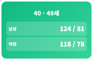 * 위 수치는 일반적인 평균치이며, 개인의 기저질환에 따라 목표 혈압은 다를 수 있습니다.