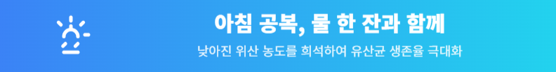 취침 후 아침은 위산 농도가 낮아진 상태입니다. 이때 충분한 물을 마셔 위산을 희석한 뒤 유산균을 섭취하면 장까지 도달할 확률이 가장 높습니다.
